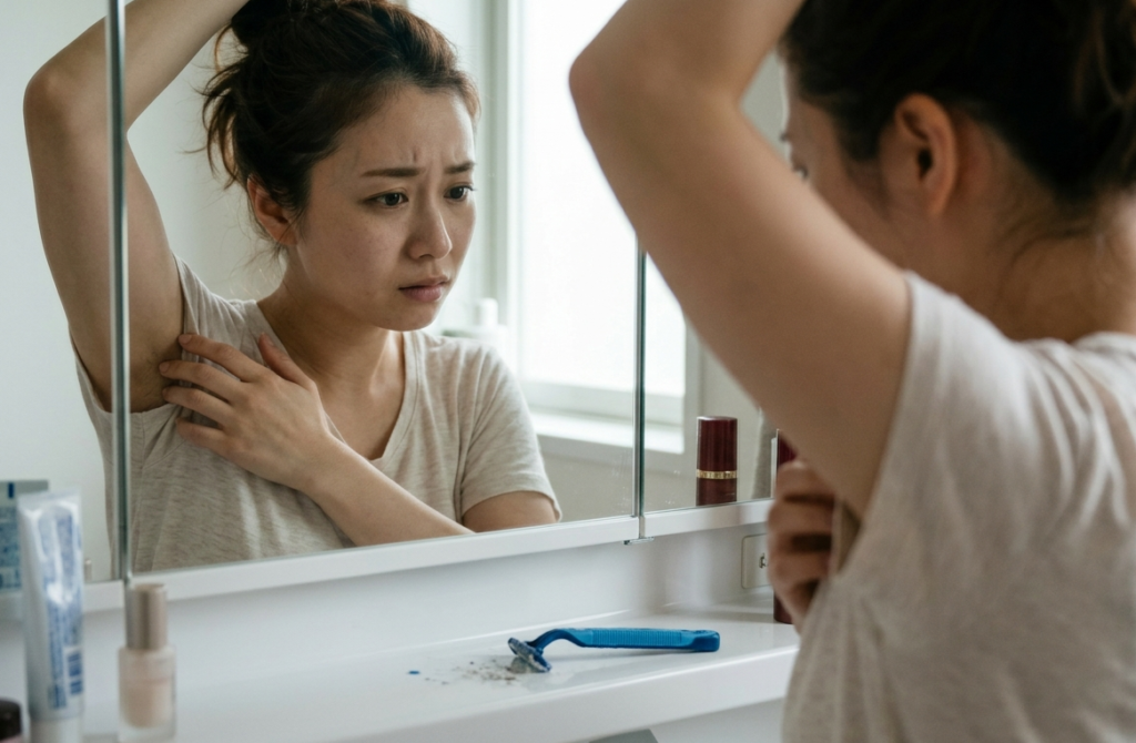 さらに、自己処理の最大のデメリットは「肌への負担」です。カミソリは毛だけでなく、肌の角質も一緒に削り取ってしまいます。それが乾燥を引き起こし、黒ずみやカミソリ負け、埋没毛の原因となります。処理するほどに肌は荒れ、その肌を隠すためにまた処理をする……という負のスパイラルに陥っている方は、決して少なくありません。